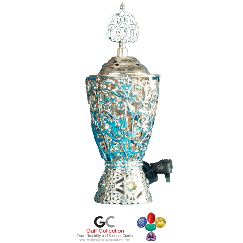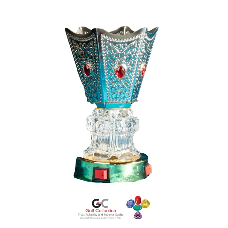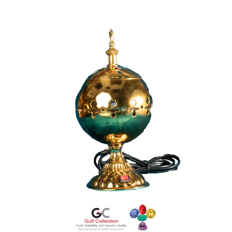 The image shows an ornate Arabian-style polyresin burner, also known as a bakhoor burner, from the Gulf Collection.We strongly believe on quality gemstone, real price and trusted long-term relation. Because our clients are the main capital for our business development.