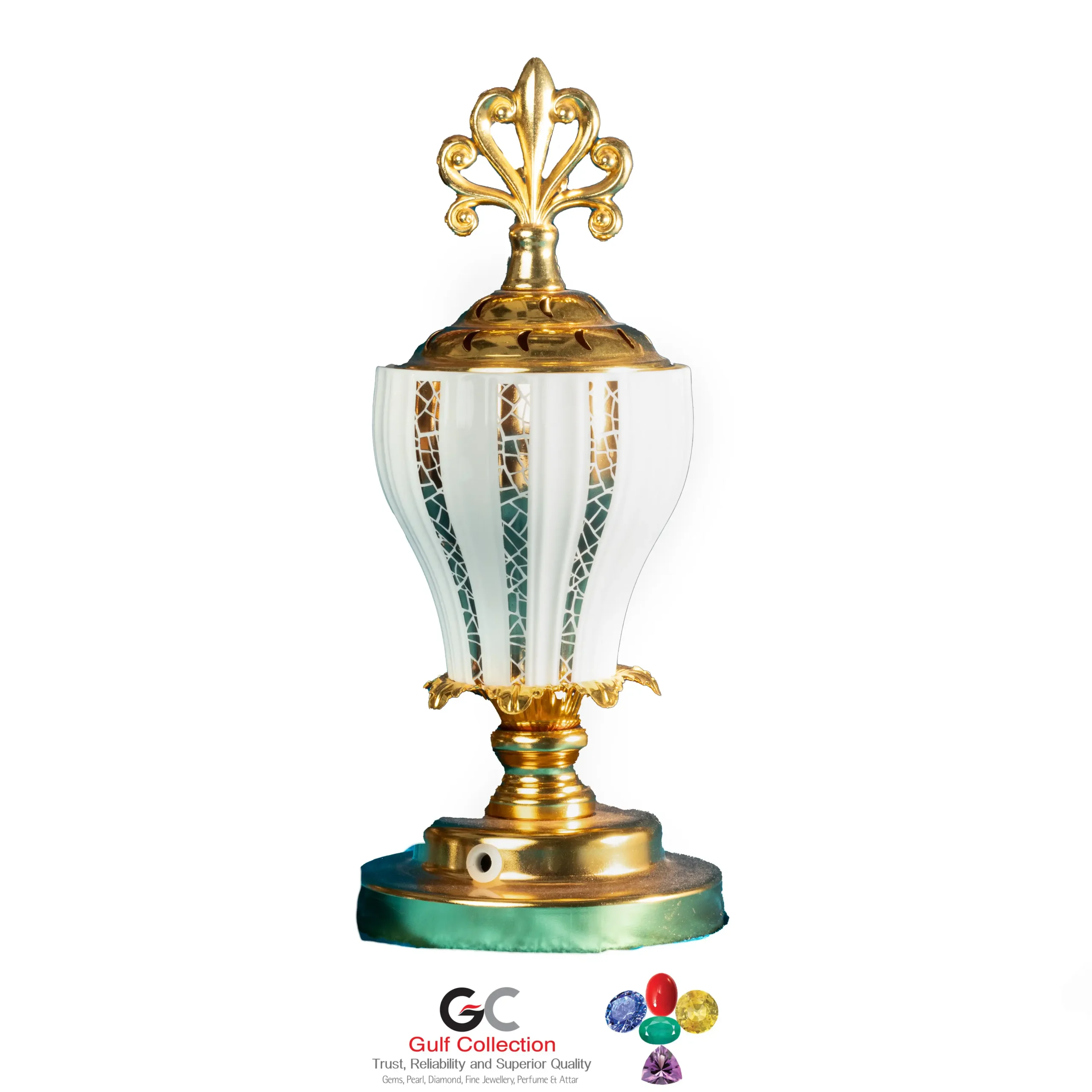 The image shows an ornate Arabian-style polyresin burner, also known as a bakhoor burner, from the Gulf Collection.We strongly believe on quality gemstone, real price and trusted long-term relation. Because our clients are the main capital for our business development.
