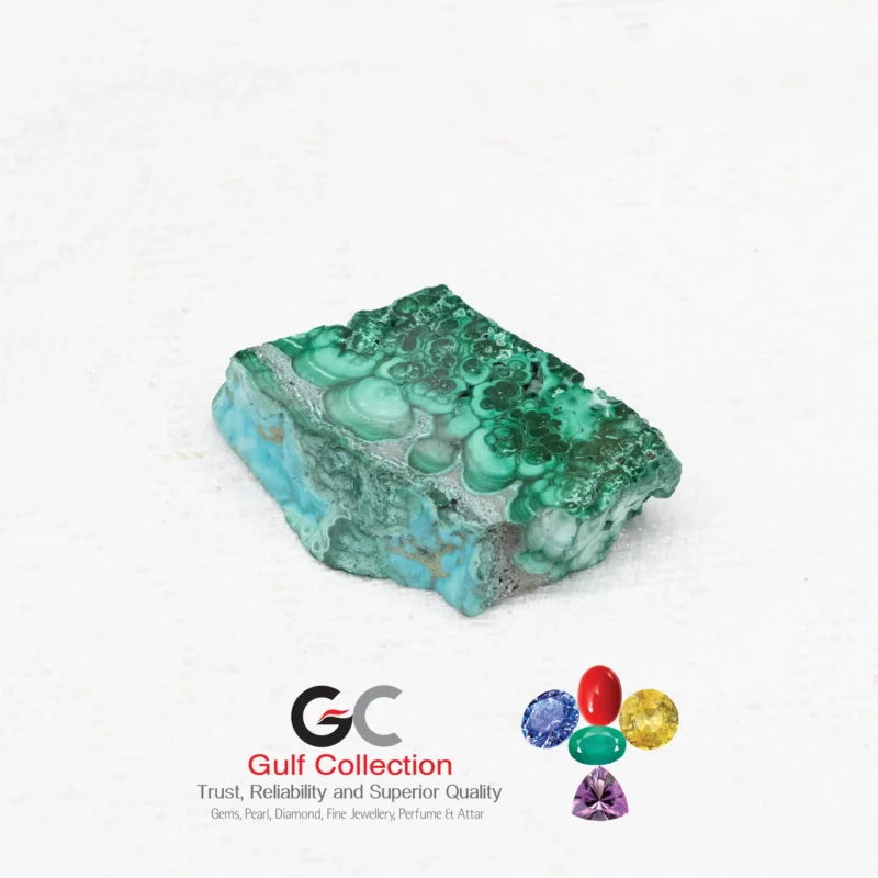 The image shows a piece of malachite, a mineral known for its distinctive green color and banded patterns. We strongly believe on quality gemstone, real price and trusted long-term relation. Because our clients are the main capital for our business development.