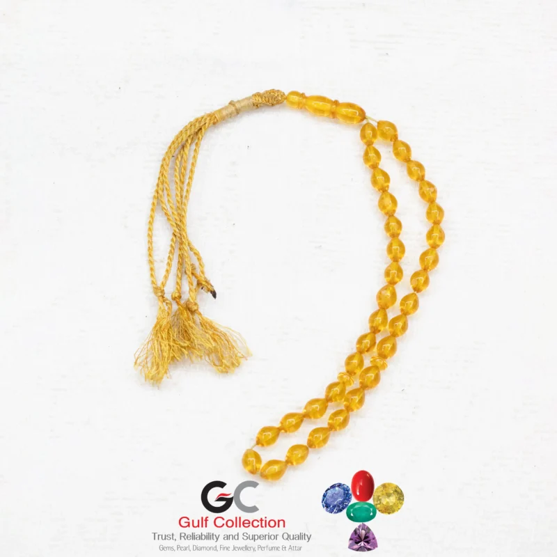 The image shows a set of amber prayer beads, also known as a tasbih .We strongly believe on quality gemstone, real price and trusted long-term relation. Because our clients are the main capital for our business development.